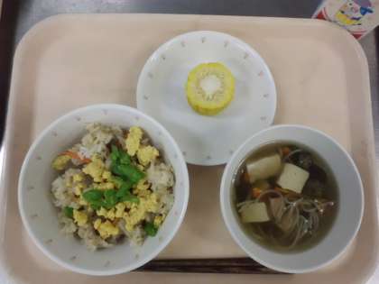 7月7日の給食【七夕献立】とうもろこしの皮を2年生がむいてくれました☆