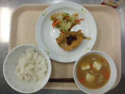麦ごはん・どこからきたの?あじフライ・白菜のおかかかけ・みそ汁