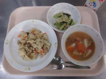 ガーリックピラフ・牛乳・じゃこサラダ・ABCスープ