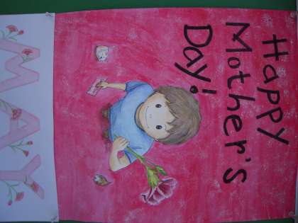 毎月、校門の掲示板に、保護者の水見さんを中心にポスターを掲示してくれます。今月のテーマは 母の日 です。見上げる子どもがお母さんに語りかけています。