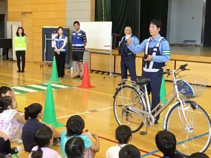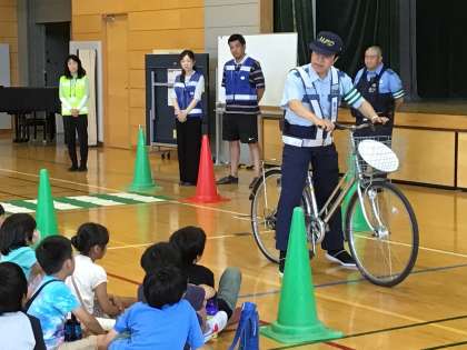 本日の2,3校時、3年生を対象に自転車安全教室が行われました。体育館での実技では、生活場面を再現したコースを、自転車に乗っているつもりで体験。車道のどちら側を走るかや、見通しの悪い道ではどうするかなど、具体的に体感しながら安全な自転車走行について考えました。また、映像資料を通して、危険な状況や走行についても知り、より安全について意識を高められました。自転車に乗るときはヘルメットをかぶることに加え、ライトやベルの使い方、安全の確認のしかたについても学習できました。自転車は、便利で楽しい乗り物です。安全に気を付けて、上手に乗れるといいですね。
