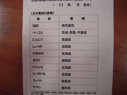 9日、12日の給食食材の産地