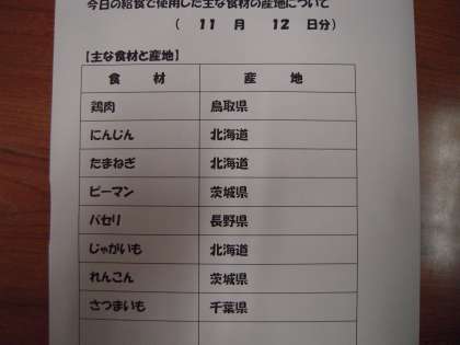 給食食材産地