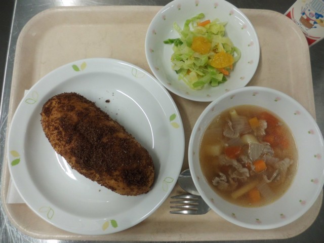 ココアあげパン・牛乳・ミネストローネ・フレンチサラダ