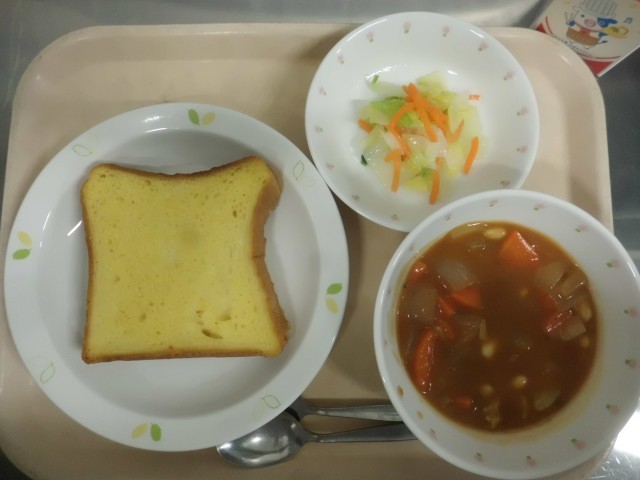 フレンチトースト・牛乳・ビーンズシチュー・白菜のサラダ