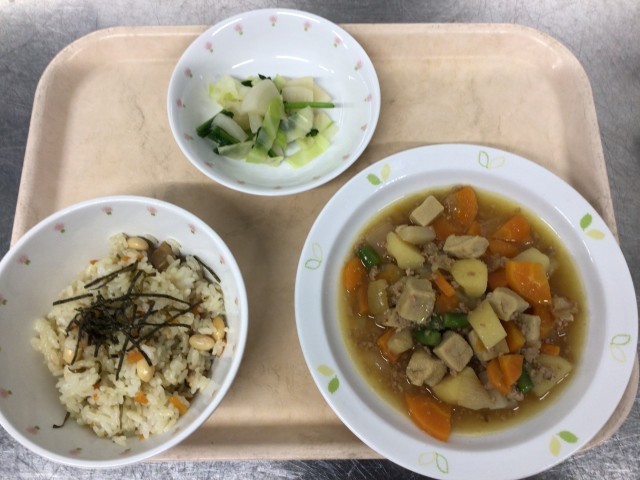 めかぶご飯 牛乳 新じゃがのそぼろ煮 かぶのレモンじょうゆかけ