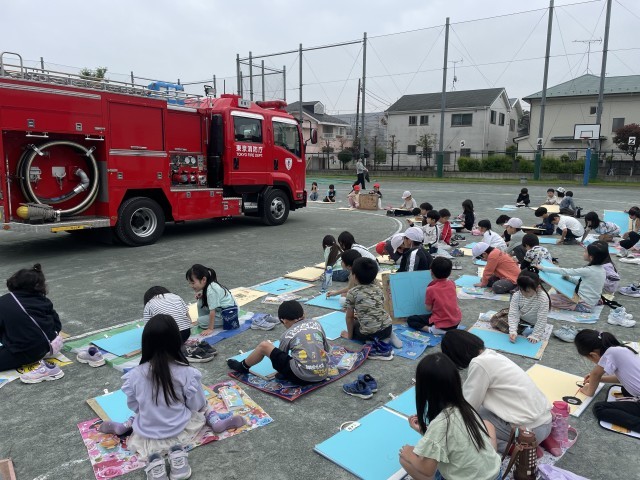 消防車の特徴をとらえ、「何があるのか?」「どんな形になっているのか?」など、興味を持ちながら活動に取り組んでいました。