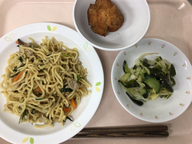 塩焼きそば 牛乳 キャベツとわかめのサラダ サーターアンダーギー