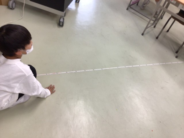 算数「長いものの長さのはかり方と表し方」の学習で、長さの測り方について考えました。これまでの学習では、ものを並べて長さを比べたり、定規を使って長さを測ったりしましたが…「教室のたての長さを測るには、どうしたらいいかな。」と、今までの経験を振り返って考えました。「体育のとき、先生たちはメジャーを使って50mを測っていたよ。」と、巻き尺を使うことを自分たちの中で発想することができました。また目盛りの読み方は定規と変わらないことを確かめた後、長いものの長さについて実際に巻き尺で長さを測る活動を行いました。自分の生活経験を学びにつなげることは、学習活動においてとても大切です。生活の場面の中でも長いものの長さについて意識できるように、声をかけていきたいと思います。