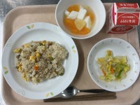 今日のこんだて チャーハン 牛乳 ラーパーツァイ 杏仁豆腐今日の産地 米・・・岩...
