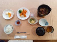 宿に到着し、今夕食を食べています。部屋でも安全に気をつけて仲良く過ごしていました...