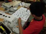 家庭科の授業はお弁当袋作りです。 集中して作業しています。