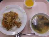 献立 五目ごはん・牛乳・豆腐汁・かぼちゃの含め煮 産地 にんじん…千葉県 ごぼう...