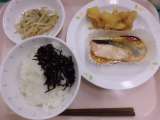 献立 ごはん・牛乳・ひじきのふりかけ・魚のみそマヨネーズ焼き・ じゃがいもの甘辛...