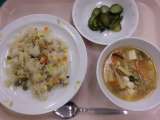 献立 えびチャーハン・牛乳・麻婆汁・きゅうりの中華味 産地 たまねぎ…佐賀県 に...