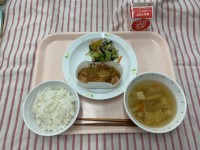 麻婆豆腐丼 春雨サラダくだもの(りんご) 牛乳