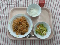 チキンライス イタリアンサラダフルーツヨーグルト 牛乳