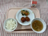麦ごはん 鮭のちゃんちゃん焼きおひたし 豆腐汁牛乳