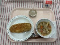 ホットドック フライドポテトABCスープ くだもの(いちご)牛乳