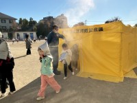 今日の避難訓練の後、煙体験を実施しました。実際に煙が充満した空間を体験し、低い姿...