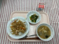 焼きとり丼 青菜の乾物あえみそ汁 牛乳