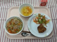<卒業祝い 6年1組リウエスト献立>ラーメン 鶏のからあげパリパリサラダ ...