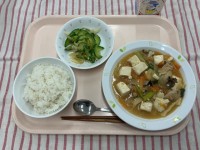 麦ごはん 家常豆腐きゅうりと大根のごま風味 牛乳
