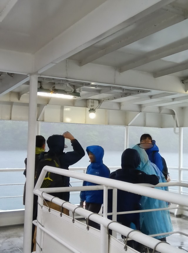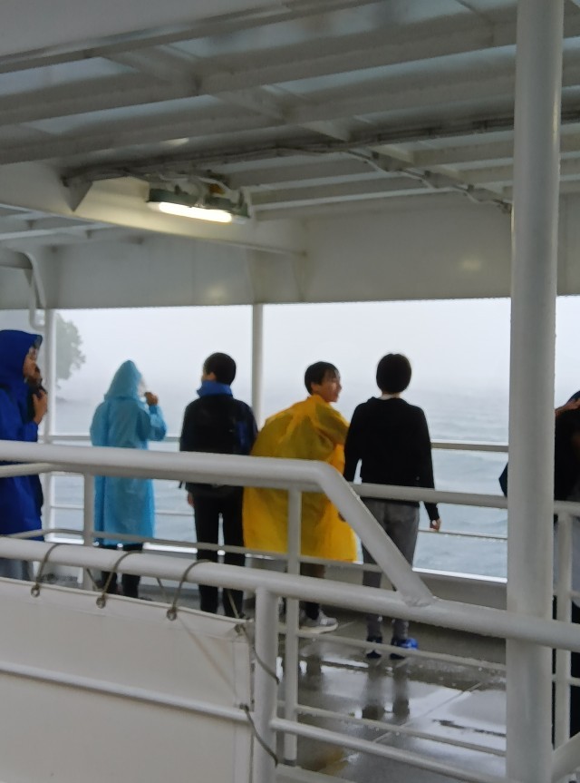 遊覧船に乗った瞬間にものすごい雨が降ってきました。