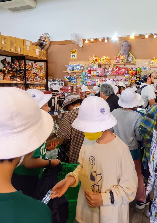 激混みの田園プラザでおみやげ選びです。