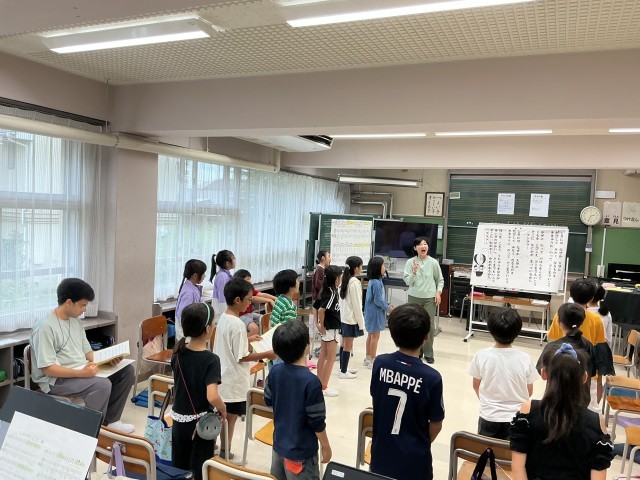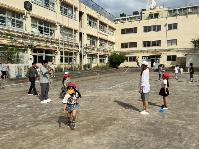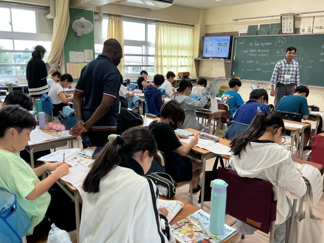今週は初めての取り組み、イングリッシュウィークを実施しています。国語や算数、体育や音楽などの時間に、各学級に外国人の先生が入って子どもたちと一緒に学習を進めています。休み時間には縄跳びをしたり、給食の時間には放送でクイズを出したりしてくれています。