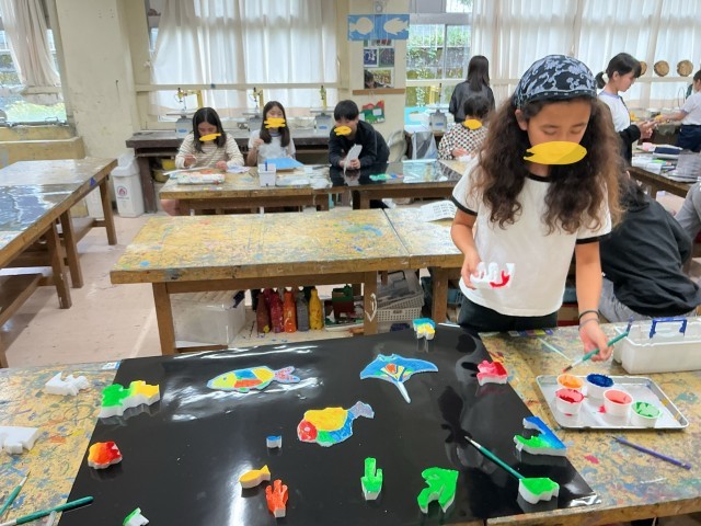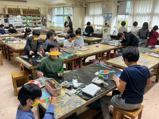 ビバ代田作品展・合唱発表会に向けた制作活動が進められています。子どもたちはグループでアイディアを出し合い構想を練り、協力して作品を作り上げています。発泡スチロールを使って形を作ったり、色を塗ったり、配置のバランスを考えたりと、それぞれが役割分担をしながら取り組む姿が見られました。作品展当日、多くの方に見ていただけることを楽しみにしています。