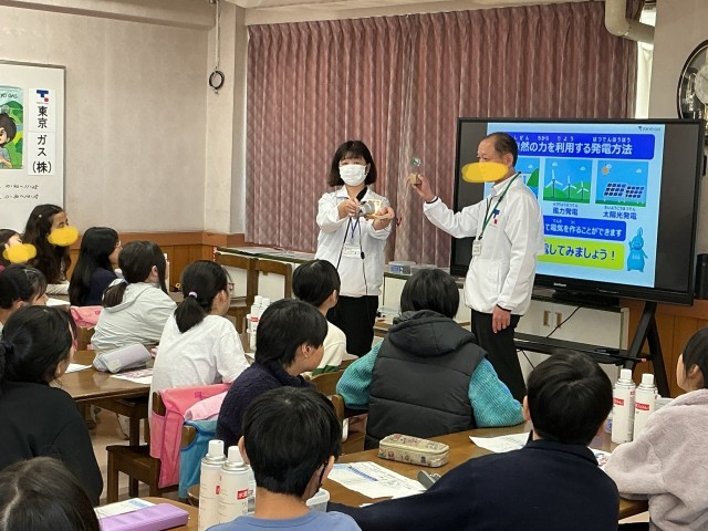 ゲストティーチャーをお迎えし、環境学習を行いました。身近な取組が環境にどのようにつながっているのか、また国や世田谷区で進められている施策、省エネの工夫についてなど、幅広い内容を学びました。座学だけでなく実験も交えた学習となり、子どもたちは環境への関心をより深めることができました。