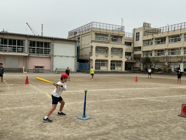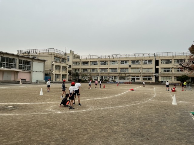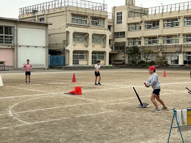 ベースボール型ゲームの学習では、子どもたちの技能がずいぶんと上達しました。打った後に次のベースへ進むかどうかを判断する力もつき、試合の流れをよく見てプレーできています。守備側も、失点を防ぐために声を掛け合いながら協力し、アウトを取る動きがとても上手になってきました。攻守どちらの場面でも、互いに励まし合い、男女関係なく協力して楽しむ姿が見られました。