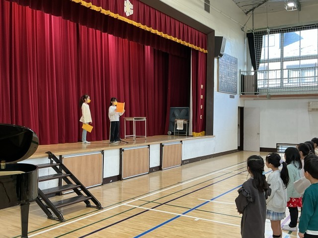 2学期終業式を行いました。校長先生からは、2学期の長い期間を、大きな事故やけがもなく無事に過ごすことができたのは、一人一人が安全に気をつけて生活してきたからです。というお話がありました。また、子どもたちの頑張りへの「ありがとう」の言葉とともに、その頑張りを支えてくれた周りの人への感謝の気持ちを伝える日にしてほしい、というお話がありました。2年生、代表児童の言葉もとても上手にできました。今学期の頑張りの成果が表れていました。