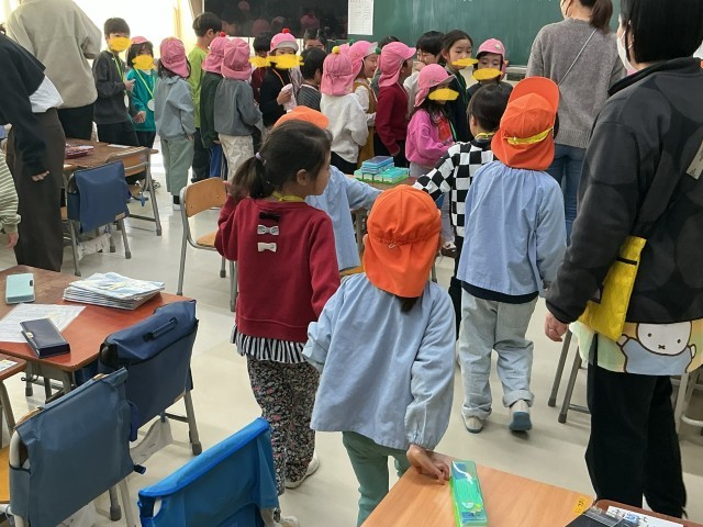 幼稚園・保育園の園児の皆さんを本校に招待し、幼保交流会を行いました。当日は、学校生活についての案内を行い、ランドセルのしまい方や学習用具の紹介、廊下の歩き方などを、実際の様子を交えながら分かりやすく伝えました。司会進行も在校生が担当し、最後まで落ち着いて役割を果たす姿が見られました。年下の園児を優しくリードする姿からは、立派なお兄さん・お姉さんとしての成長が感じられる交流会となりました。