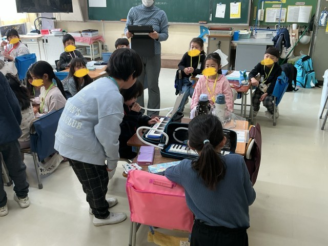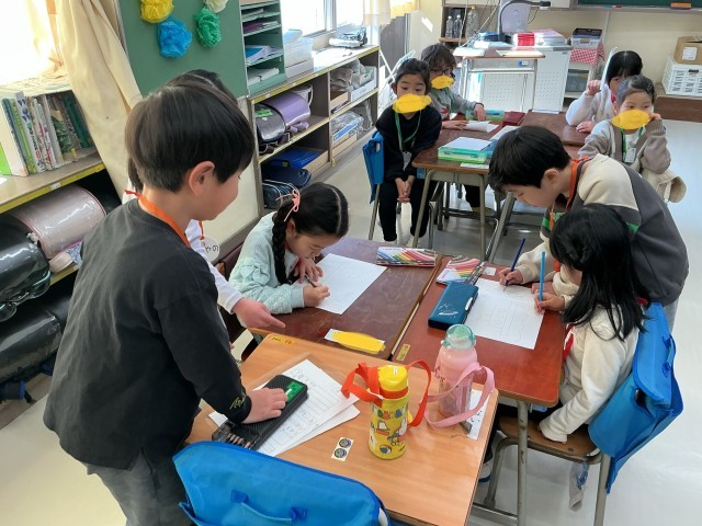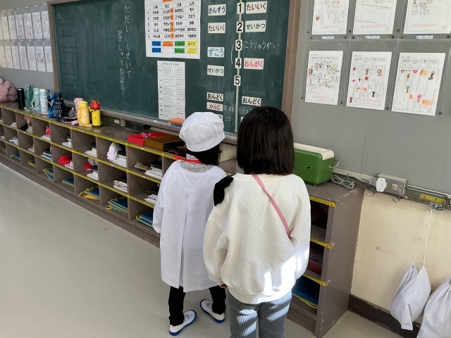 1年生が未就学児をお迎えし、幼保交流会を行いました。交流会では、小学校生活について紹介しました。朝の準備の仕方や学級での過ごし方、道具の使い方、文字の書き方などを、1年生が優しく丁寧に教えてあげることができました。