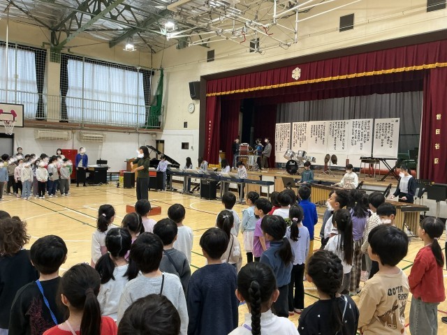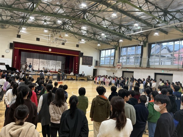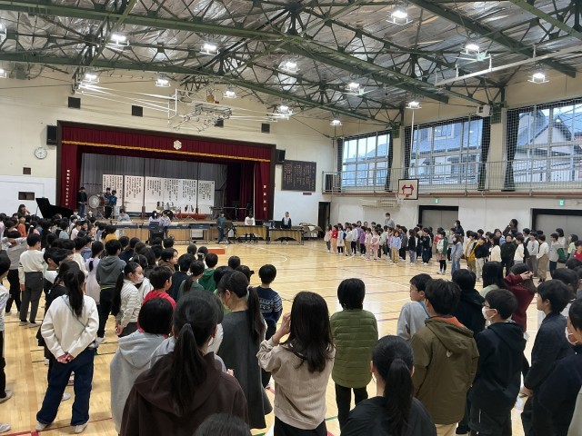 音楽朝会で、6年生を送る会で歌う「きずな」を全校で練習しました。音楽委員の演奏に合わせて、心を一つにして歌うことができました。6年生への感謝の気持ちを込めて、体育館いっぱいにきれいな歌声が広がりました。