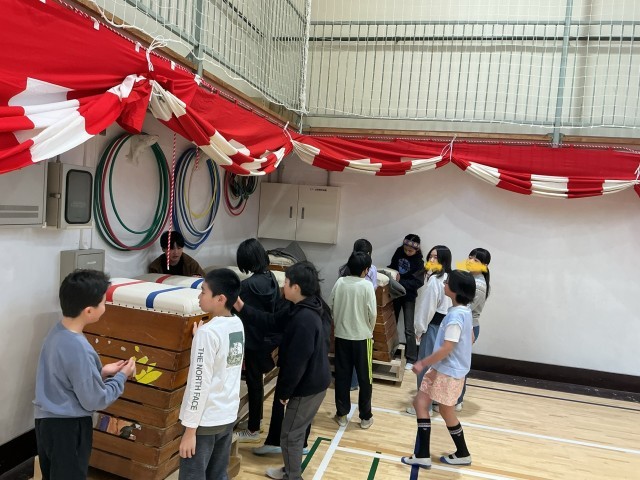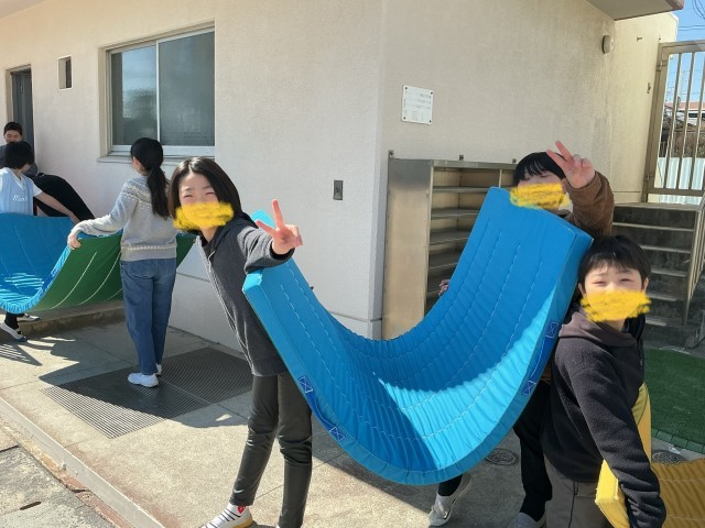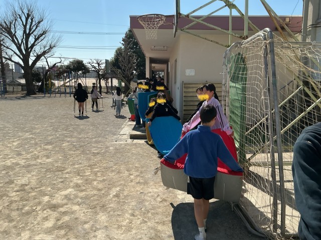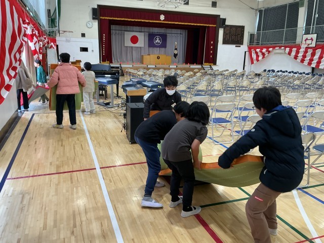 卒業式に向けて、5年生が会場設営を行いました。