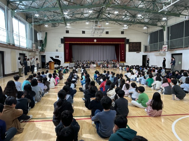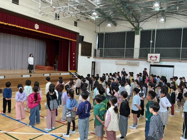 対面式では、全校児童がそろい、みんなで校歌を元気に歌いました。一年生も少し緊張しながら、上手に「よろしくお願いします」と言うことができました。また、朝会の体型に並び、学校生活の一員としての一歩を踏み出しました。これから少しずつ学校の決まりや流れに慣れていきます。