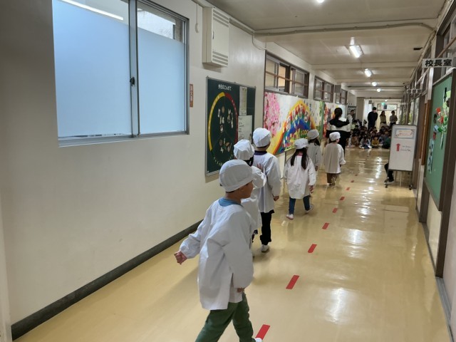 1年生は、明日から始まる給食当番に向けて、当番の流れなどの練習をしました。一つ一つの動きを確認しました。明日は初めての給食、楽しみです。