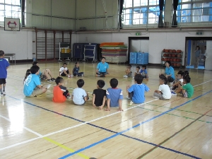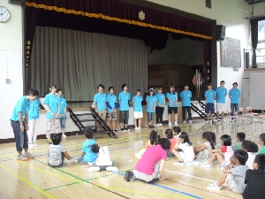 子供たちは、大学生と一緒にハンカチ落とし、フルーツバスケット、椅子取りゲーム、バルーンアート等の遊びをしました。