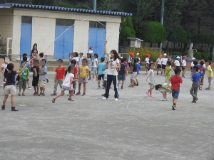 本校では、児童に運動の楽しさを味わわせ「運動が好き」という意識を育てるため、また、調整力・跳躍力の向上を図るために、マイチャレンジタイムを設定し、取り組んでいます。今年度第2期実施計画は、「クラスごとに5分間で何回跳べるか挑戦する。」といった内容です。学年の実態に応じて、回し方などを工夫しました。