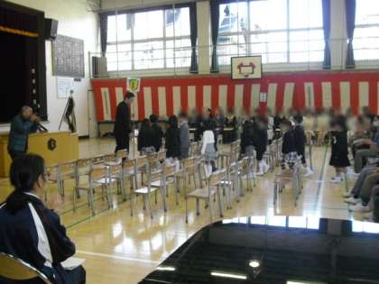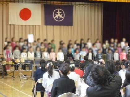 校長、PTA会長の話の後は、2年生による歓迎の歌と合奏。