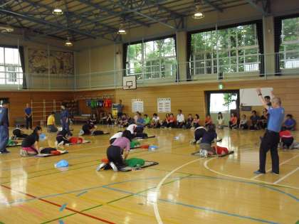 5/29 松原小学校を会場にして、学び舎3校全教員が集まって、今年度の水泳事故防止に向け、世田谷消防署、消防団等の方々のご指導のもと、救急救命講習を行いました。