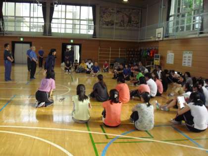 心肺蘇生法、AEDの使い方等の確認を行う中で、事故が起きないことを祈るとともに、いざというときの心構えができました。また、3校の教職員の顔合わせも同時に行うことができました。