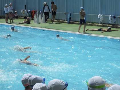 高学年水泳の授業も、よい天気の中実施できました。水はちょっと冷たかったとのことでした。