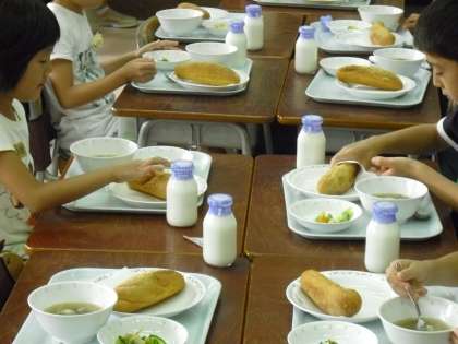 給食もきょうからスタートしました。子どもに人気のメニューということもあり、おいしくいただきました。