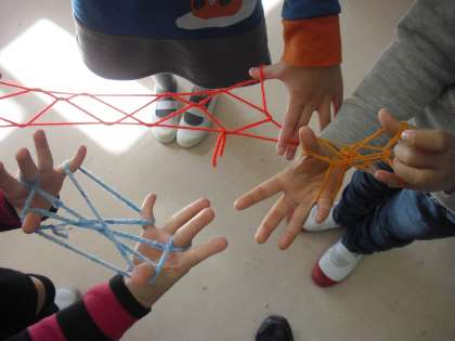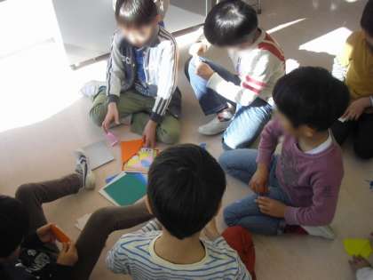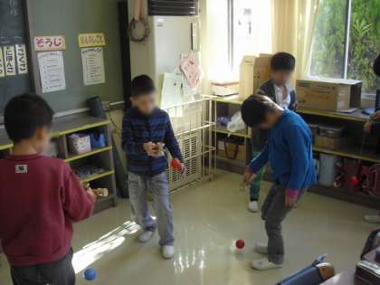今日、一年生は、新一年生との交流会に向け、1,2組合同で準備をしました。担当の昔遊びを決め、練習しました。