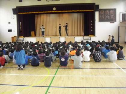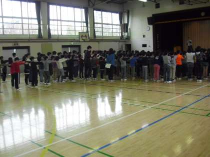 今年度第1回の体育朝会は、体育館で、整列について、学習しました。