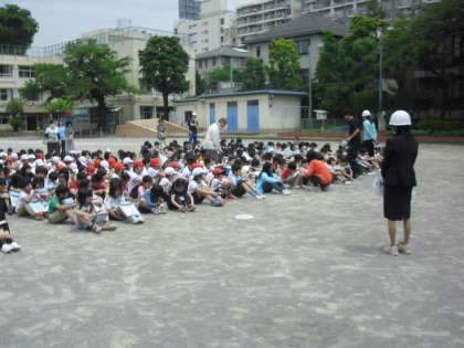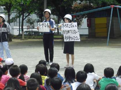 また、避難訓練を行いました。今日は地震を想定して行いました。校長より、「おかしも」のほか、「落ちてこない・倒れてこない・移動してこない」ことも確認しましょうとお話がありました。
